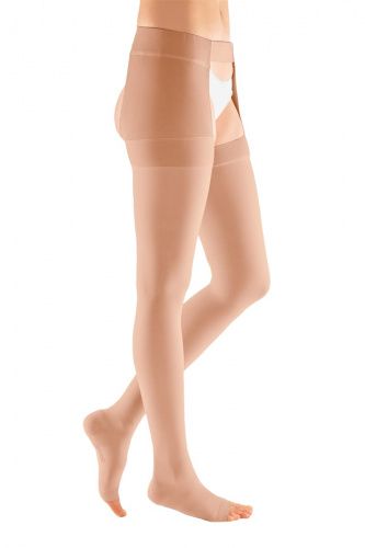 Компрессионный чулок 3-ого класса компрессии mediven plus с застежкой на талии и открытым носком как универсальное решение в лечении заболеваний вен