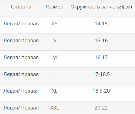 Подбор размера лучезапястного бандажа: