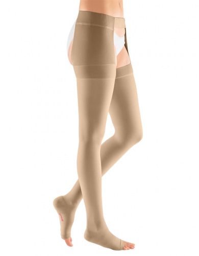 Компрессионный чулок 2 класса компрессии mediven plus с открытым носком и застёжкой на талии как универсальное решение в лечении заболеваний вен.